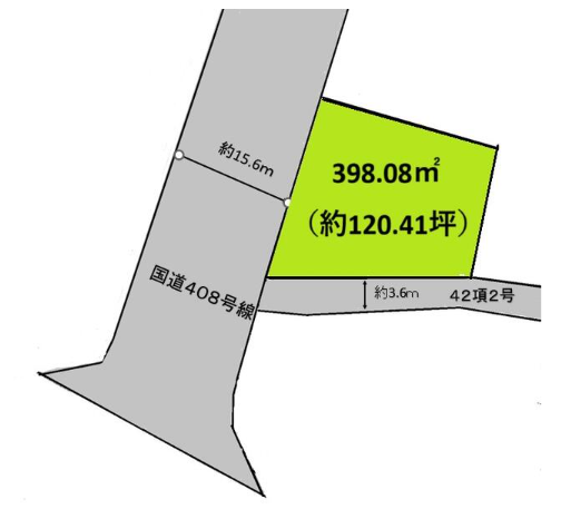 | 土地面積 | 公398.08㎡(120.41坪) | 接道 | 西側(公道)幅 約15.6m 南側幅 約3.6m |