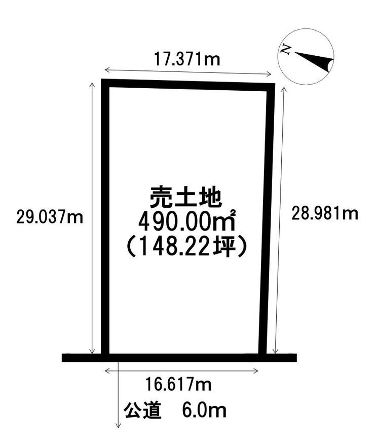| 土地面積 | 公490㎡(148.22坪) | 接道 | 西側(公道)幅 約6.0m 間口 約16.61m |