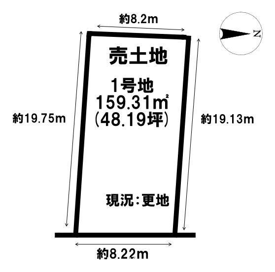 | 土地面積 | 公159.31㎡(48.19坪) | 接道 | 東側(公道)幅 約4.9m 間口 約8.22m |