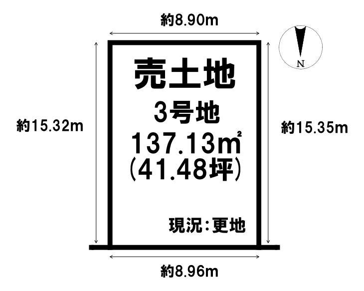 | 土地面積 | 公137.13㎡(41.48坪) | 接道 | 北側(私道)幅 約6.0m 間口 約8.96m |