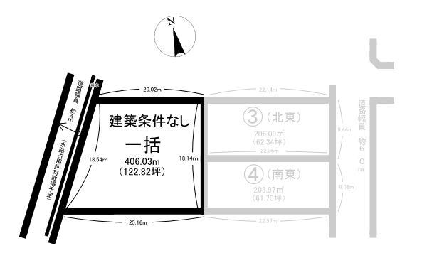 | 土地面積 | 406.63㎡(123坪) | 接道 | 西側(公道)幅 約4.0m 間口 約18.54m |