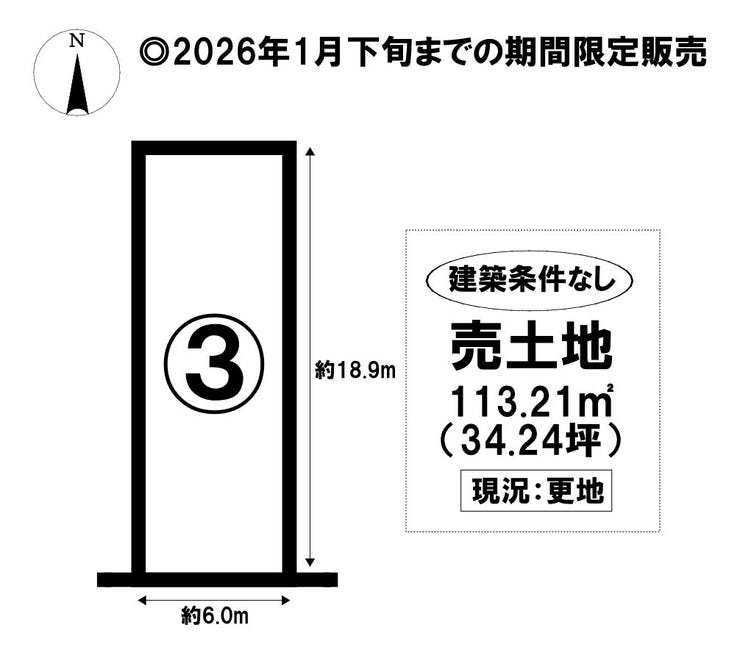 | 土地面積 | 公113.21㎡(34.24坪) | 接道 | 南側(公道)幅 約6.0m |