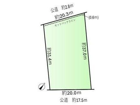 | 土地面積 | 公684.46㎡(207.04坪) | 接道 | 南東側(公道)幅 約17.5m 間口 約20.00m 北西側(公道)幅 約2.8m 間口 約20.30m |