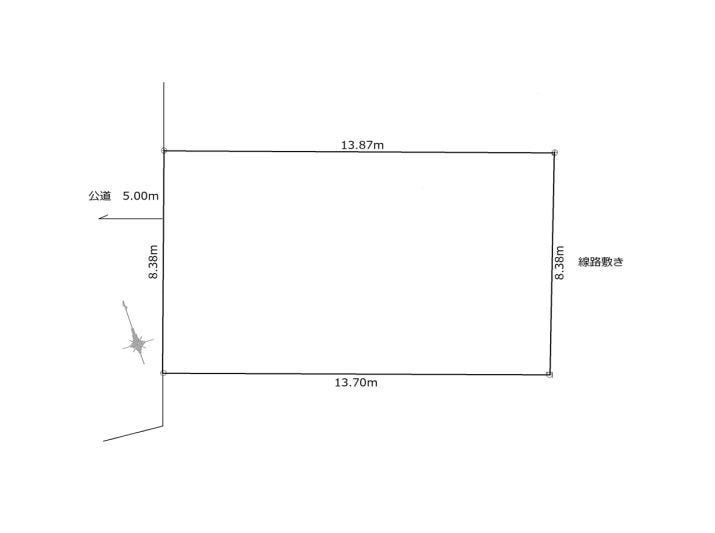 | 土地面積 | 実115.63㎡(34.97坪) | 接道 | 北西側(公道)幅 約5.0m 間口 約8.38m |