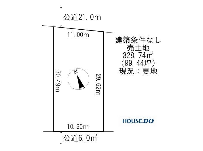 | 土地面積 | 328.74㎡(99.44坪) | 接道 | 南西側(公道)幅 約6.0m 間口 約10.90m 北東側(公道)幅 約21.0m 間口 約11.00m |