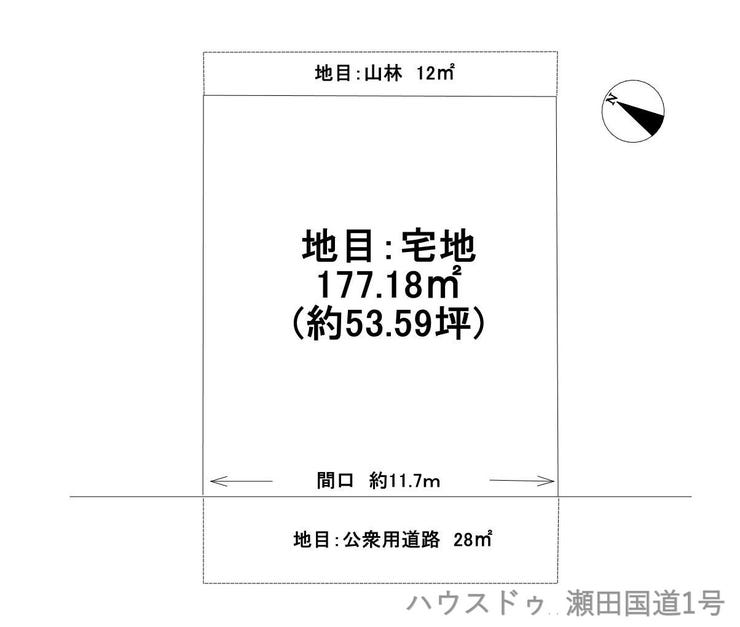 | 土地面積 | 公177.18㎡(53.59坪) | 接道 | 南西側(私道)幅 約5.0m 間口 約11.70m |