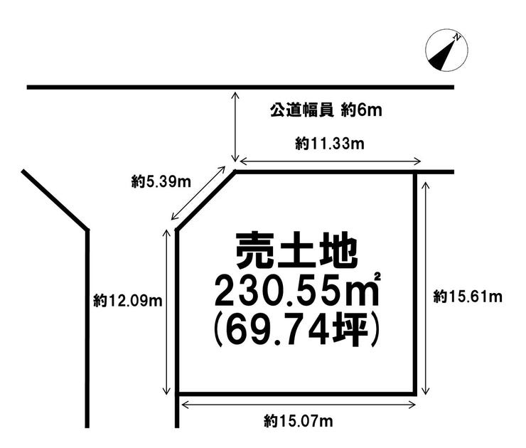 | 土地面積 | 公230.55㎡(69.74坪) | 接道 | 北西側(公道)幅 約6.2m 間口 約11.33m 南西側(公道)幅 約6.0m 間口 約12.09m |