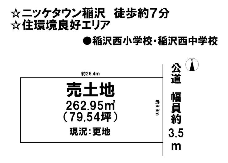 | 土地面積 | 実262.95㎡(79.54坪) | 接道 | 東側(公道)幅 約3.5m 間口 約9.90m |