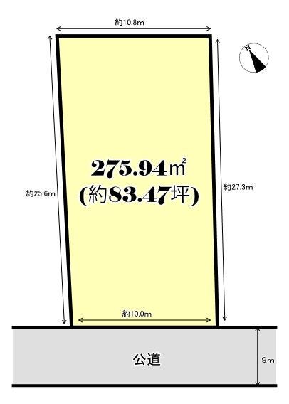 | 土地面積 | 公275.94㎡(83.47坪) | 接道 | 南側(公道)幅 約9.0m 間口 約10.00m |