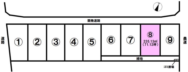 | 土地面積 | 235.13㎡(71.12坪) | 接道 | 北側(公道)幅 約5.0m 間口 約11.90m |