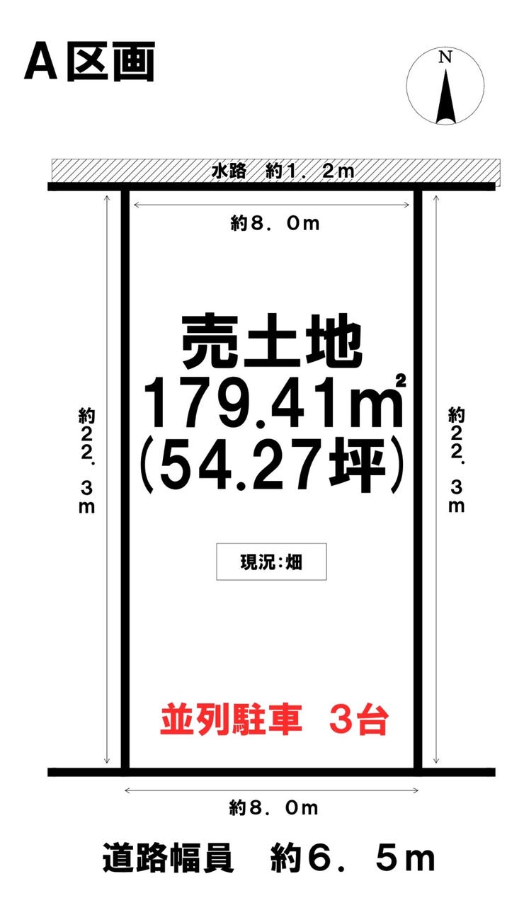 | 土地面積 | 公179.41㎡(54.27坪) | 接道 | 南側幅 約6.5m 間口 約8.00m |
