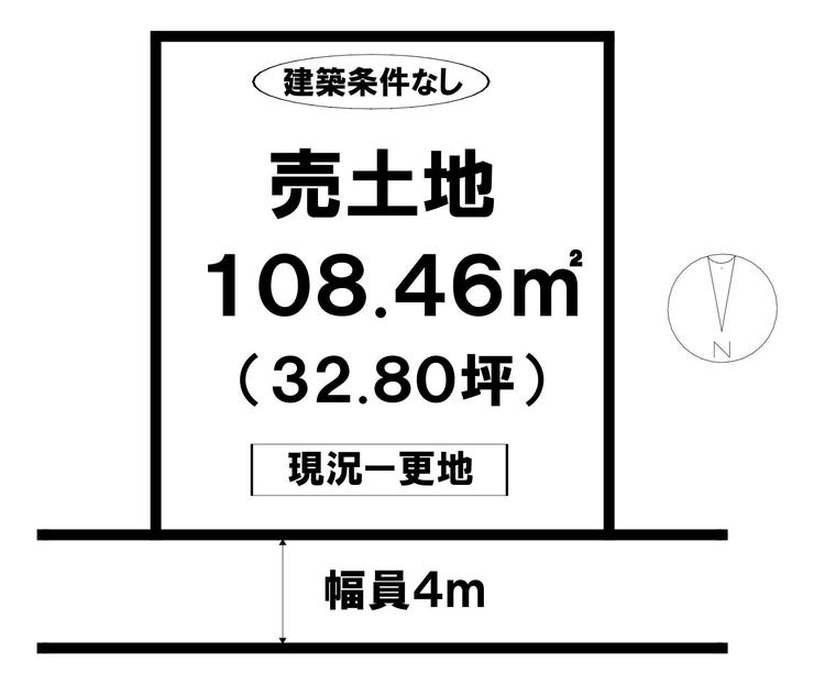 | 土地面積 | 公108.46㎡(32.80坪) | 接道 | 北側(公道)幅 約4.0m 間口 約9.36m |