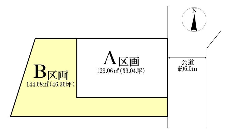 | 土地面積 | 実144.68㎡(43.76坪) | 接道 | 東側(公道)幅 約6.0m |