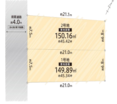 | 土地面積 | 公149.71㎡(45.28坪) | 接道 | 南西側(公道)幅 約4.0m |