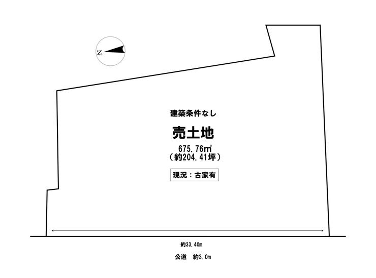| 土地面積 | 675.76㎡(204.41坪) | 接道 | 西側(公道)幅 約3.0m 間口 約33.40m |