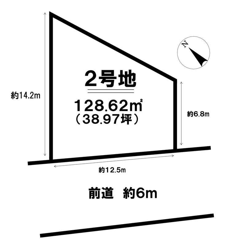 | 土地面積 | 128.62㎡(38.90坪) | 接道 | 西側(公道)幅 約6.0m 間口 約12.50m |