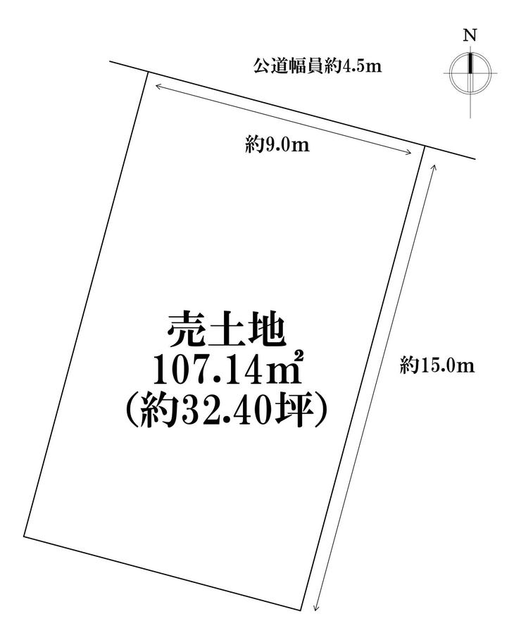 | 土地面積 | 公107.14㎡(32.40坪) | 接道 | 北側(公道)幅 約4.5m 間口 約9.00m |