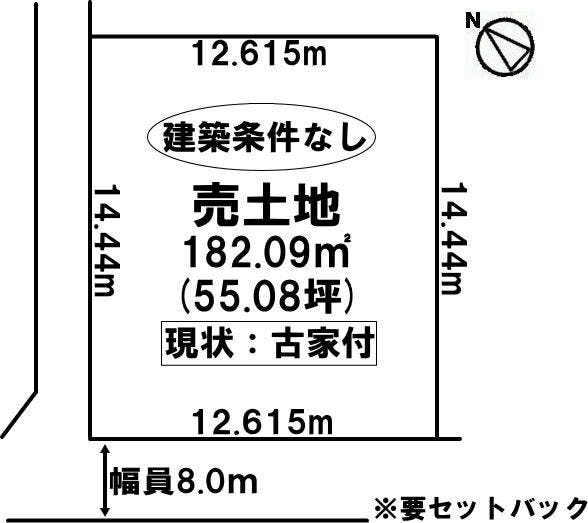| 土地面積 | 公182.09㎡(55.08坪) | 接道 | 南西側(公道)幅 約8.0m 間口 約12.61m |