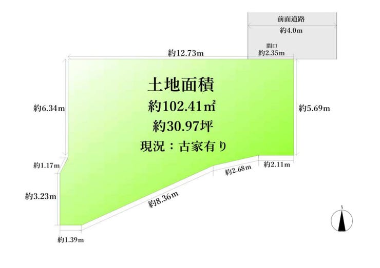 | 土地面積 | 公102.41㎡(30.97坪) | 接道 | 北側(私道)幅 約4.0m 間口 約2.35m |