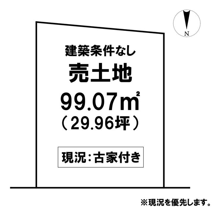 | 土地面積 | 公99.07㎡(29.96坪) | 接道 | 北側(公道)幅 約3.9m 間口 約8.30m |