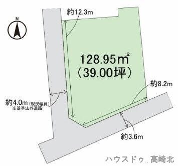 | 土地面積 | 公128.95㎡(39坪) | 接道 | 南側幅 約3.6m 間口 約8.20m 西側幅 約4.0m 間口 約12.30m |