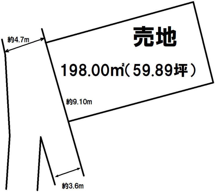 | 土地面積 | 公198㎡(59.89坪) | 接道 | 西側(公道)幅 約3.6m 間口 約9.10m |