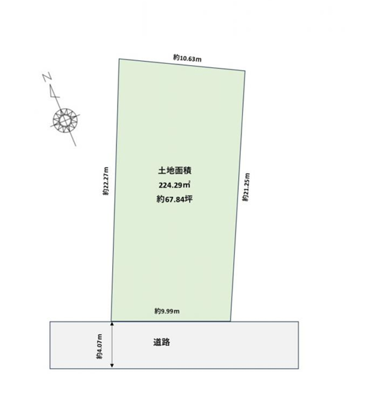 | 土地面積 | 実224.29㎡(67.84坪) | 接道 | 南西側(公道)幅 約4.0m 間口 約9.90m |