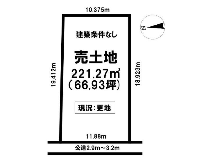 | 土地面積 | 公221.27㎡(66.93坪) | 接道 | 西側(公道)幅 約2.9m 間口 約11.88m |
