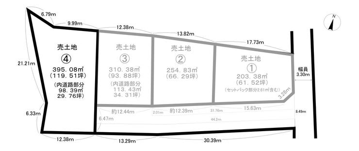 | 土地面積 | 395.08㎡(119.51坪) | 接道 | 東側(公道)幅 約3.3m 間口 約2.17m |