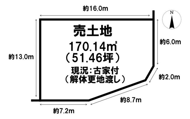 | 土地面積 | 公170.14㎡(51.46坪) | 接道 | 南側(公道)幅 約6.0m 東側(公道)幅 約6.0m |