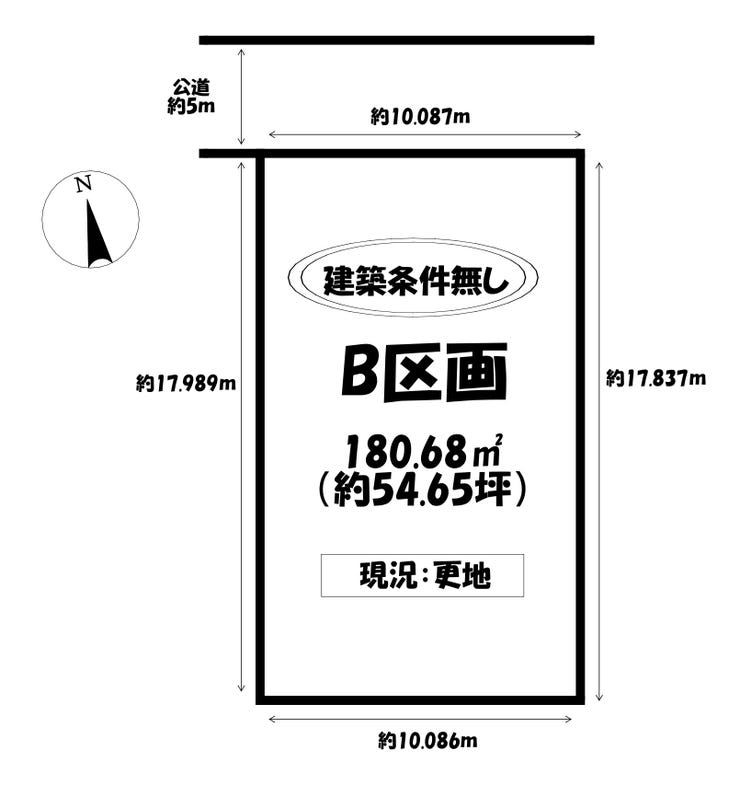 | 土地面積 | 180.68㎡(54.65坪) | 接道 | 北側(公道)幅 約5.0m 間口 約10.08m |