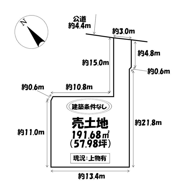 | 土地面積 | 公191.68㎡(57.98坪) | 接道 | 北東側(公道)幅 約5.0m |