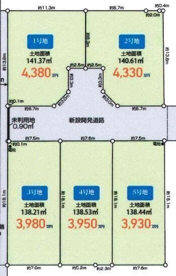 | 分譲情報 | 【販売区画】:5区画 【価格】:3,980万円 ~4,380万円 【土地面積】:138.21㎡ ~141.37㎡ |