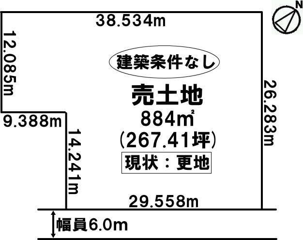| 土地面積 | 公884㎡(267.41坪) | 接道 | 南東側(公道)幅 約6.0m 間口 約29.55m |