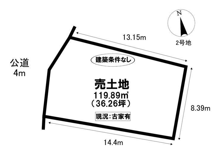 | 土地面積 | 119.89㎡(36.26坪) | 接道 | 西側(公道)幅 約4.0m |