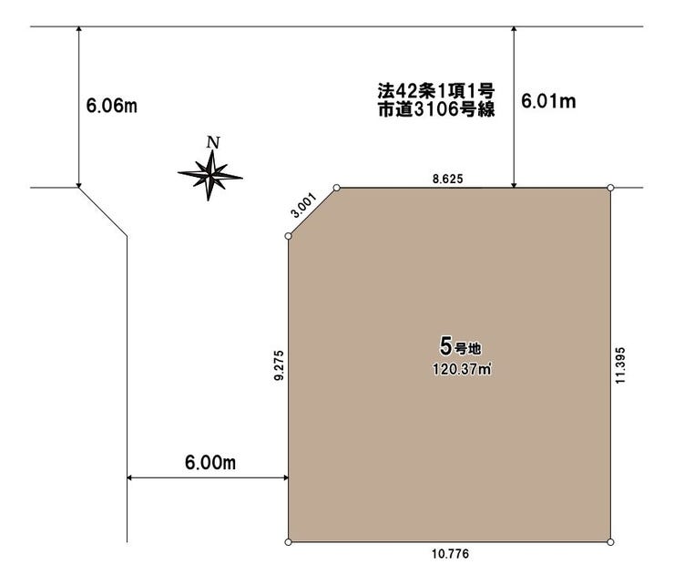 | 土地面積 | 実120.37㎡(36.41坪) | 接道 | 北側(公道)幅 約6.0m 西側(公道)幅 約6.0m |