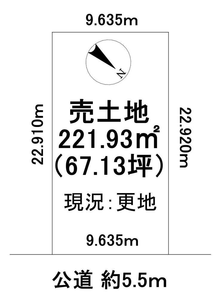 | 土地面積 | 221.93㎡(67.13坪) | 接道 | 北東側(公道)幅 約5.5m 間口 約9.63m |