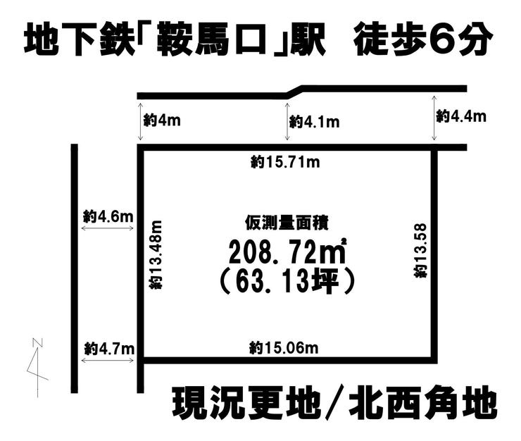 | 土地面積 | 公206.2㎡(62.37坪) | 接道 | 北側(公道)幅 約4.0m 間口 約15.70m 西側(公道)幅 約4.6m 間口 約13.40m |