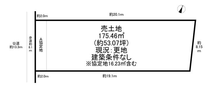 | 土地面積 | 実175.46㎡(53.07坪) | 接道 | 西側(公道)幅 約9.5m 間口 約8.11m |