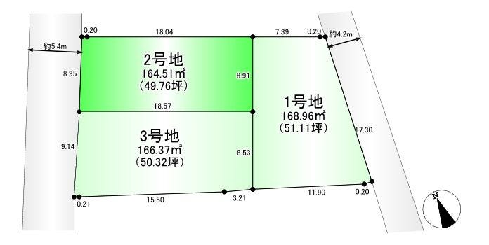 | 土地面積 | 164.51㎡(49.76坪) | 接道 | 西側(公道)幅 約5.4m 間口 約8.95m |