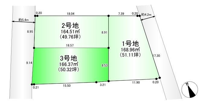 | 土地面積 | 166.37㎡(50.32坪) | 接道 | 西側(公道)幅 約5.4m 間口 約9.14m |