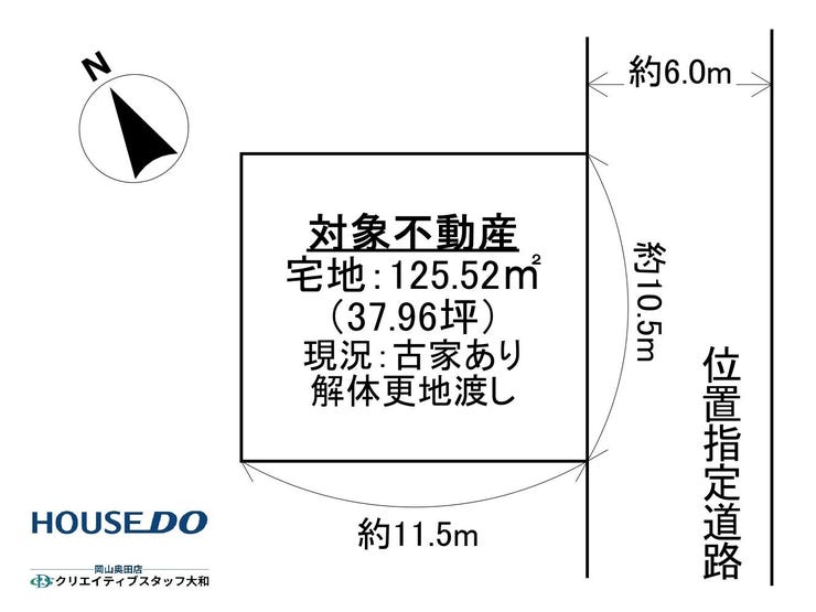 | 土地面積 | 公125.52㎡(37.96坪) | 接道 | 東側(私道)幅 約6.0m 間口 約10.50m(位置指定) |