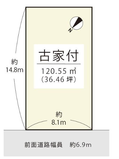 | 土地面積 | 公120.55㎡(36.46坪) | 接道 | 北西側(公道)幅 約6.9m 間口 約8.10m |