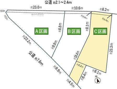 | 土地面積 | 公231.35㎡(69.98坪) | 接道 | 北側(公道)幅 約2.1m 間口 約8.20m |