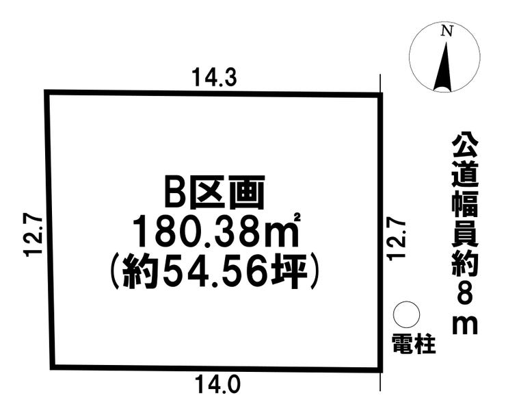 | 土地面積 | 公180.38㎡(54.56坪) | 接道 | 東側(公道)幅 約8.0m 間口 約12.70m |