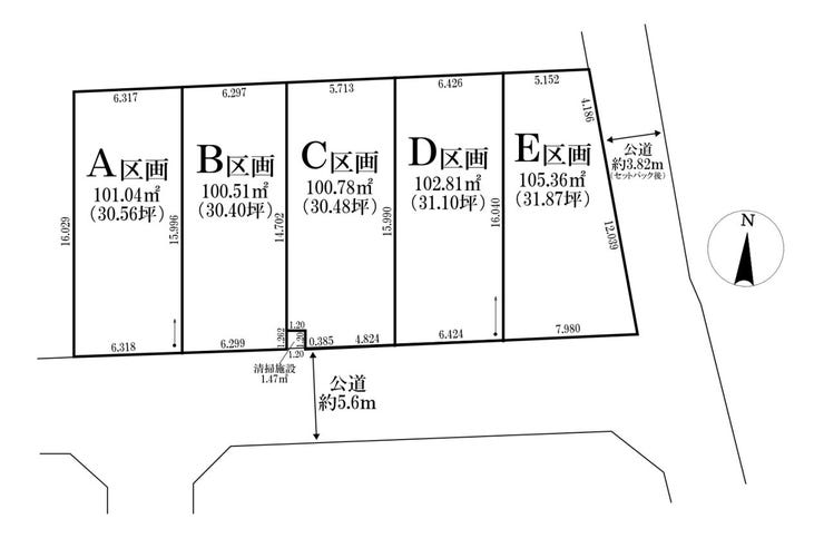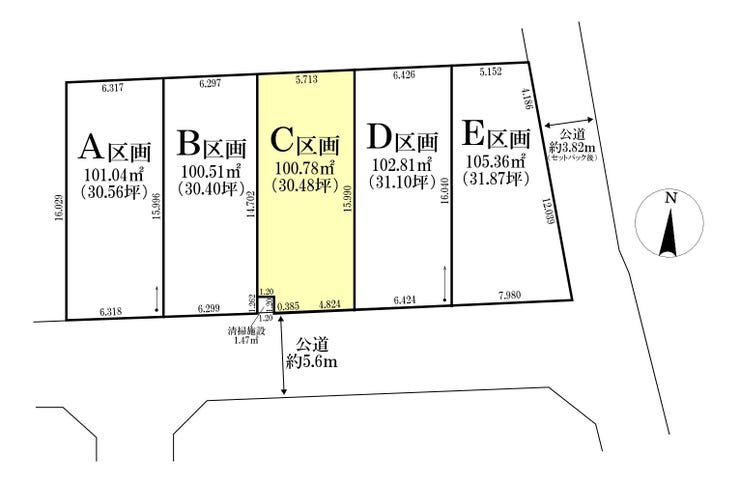 | 土地面積 | 実100.78㎡(30.48坪) | 接道 | 南側(公道)幅 約5.6m |