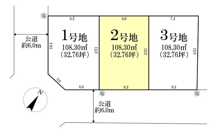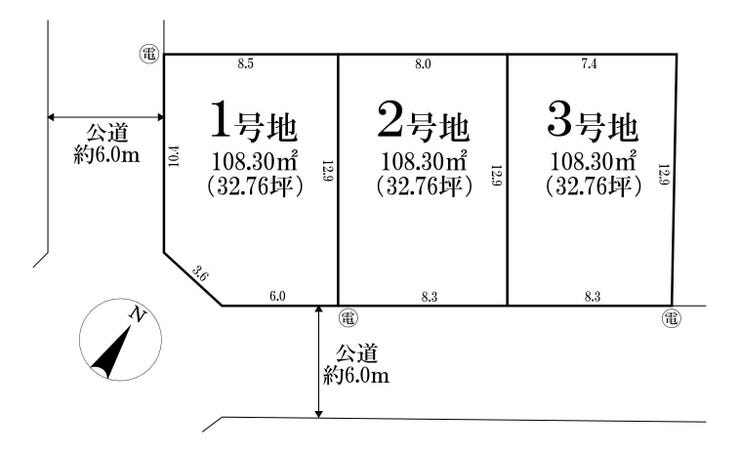 | 土地面積 | 108.3㎡(32.76坪) | 接道 | 南東側(公道)幅 約6.0m |