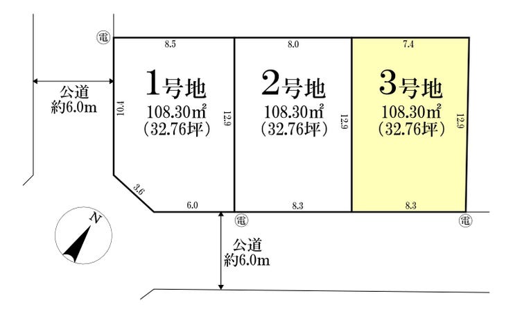 | 土地面積 | 108.3㎡(32.76坪) | 接道 | 南東側(公道)幅 約6.0m |