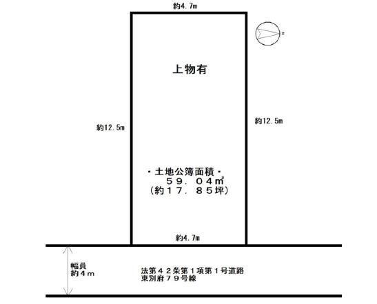 | 土地面積 | 公59.04㎡(17.85坪) | 接道 | 東側(公道)幅 約4.0m 間口 約4.70m |