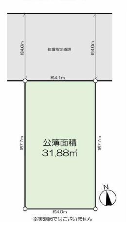 | 土地面積 | 公31.88㎡(9.64坪) | 接道 | 北側(私道)幅 約4.0m 間口 約4.10m(位置指定) |